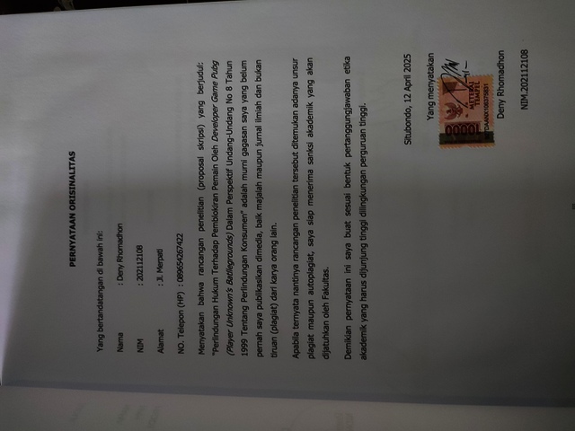 Deny, Rhomadhon (2025) PERLINDUNGAN HUKUM TERHADAP PEMBLOKIRAN PEMAIN OLEH DEVELOPER GAME PUBG (PLAYER UNKNOWN’S BATTLEGROUNDS) DALAM PERSPEKTIF UNDANG-UNDANG NOMOR 8 TAHUN 1999 TENTANG PERLINDUNGAN KONSUMEN. Other thesis, Universitas Abdurachman Saleh Situbondo.